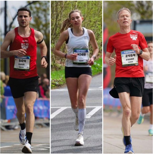 Guus Rikmanspoel liep in zijn eerste hele marathon gelijk een toptijd van 3:10:13. Frank Droste liep met 3:34:27 in de hele marathon een hele mooie PR. Lola Grobbink kwam in haar eerste marathon in 4:26:58 over de finish. Stuk voor stuk toppers waar we erg trots op zijn. Op de foto hieronder de drie marathonlopers in actie in Enschede.
